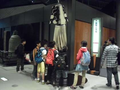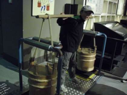 5階に下りると、人々の暮らしに関する様々な江戸文化のブースがあります。いろいろな体験コーナーも設置されています。纒を持ったり、肥桶をかついだりすることもできました。実際に体験しながら、当時の人々の生活を想像したり、学校で学んだこととむすびつけて考えることは大切です。