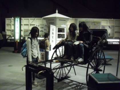 「江戸ゾーン」から「東京ゾーン」へ。「東京ゾーン」は文明開化後から近代の東京の様子を表現したコーナーです。人力車をはじめ、ほぼ実物に近い物が展示され、間近でみたり、ふれたりすることができます。