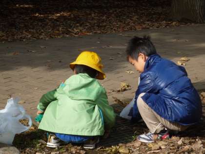 1・2年生の生活科「秋見つけ」の活動の様子です。1年生と2年生は秋を探しに芦花公園へ出かけました。4月からかかわりを深めてきた仲良しパートナーさんとペアで、木の実や落ち葉などを集めました。2年生は、経験を生かして、声をかけながら親切に1年生に接していました。