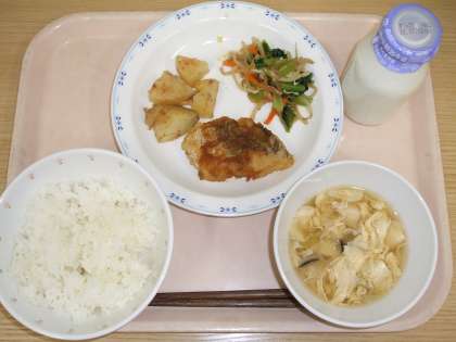 「魚のバーベキューソース」は、カリッと揚げた魚(今日はメルルーサ)に、りんごを使った特製バーベキューソースをかけた料理です。甘辛いソースで、魚が苦手でもおいしく食べられる一品です。