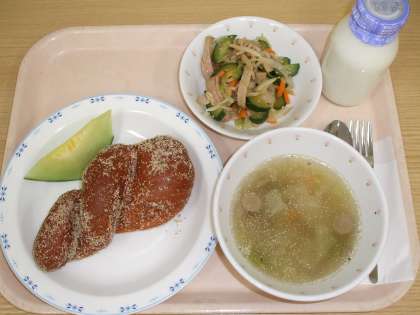 夏になり、プールの授業が始まっていますが、プールに入ったあとの給食は大忙しです。当番さんは、急いで着がえて配膳の準備。たくさん泳いだあとは、給食ももりもり食べてくれますね。