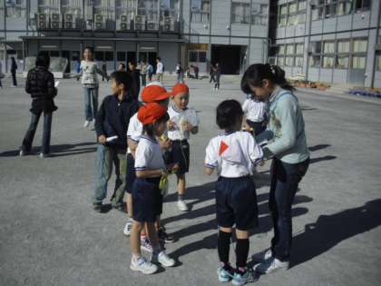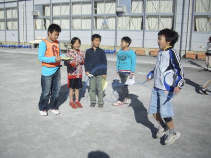 休み時間の様子です。なわとび月間も残すところ、あとわずかとなりました。今日も運動委員会による「なわとび検定」が行われました。なわとびカードを委員の6年生にわたし、見てもらいます。「合格だよ」6年生はカードに印を付けてあげます。一つでも多くの技に合格するように、子どもたちはがんばっています。