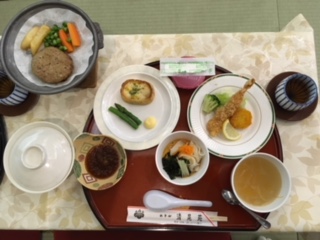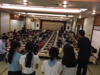 宿舎でいただく最後の夕食です。サプライズで2人のハッピーバースデーの大合唱もしました。子どもたちが好きそうなメニューです。いただきます。