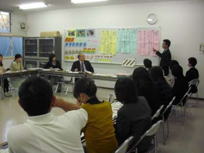 授業後は3つの分科会に分かれ協議をしました。これは分科会で話し合われたことを報告しているところです。よりよい授業を目指すために成果や課題について協議を深めていきました。講師には、芦花中学校の小宮校長(数学)を招き、中学校の学習につなげるためにも小学校での基礎基本を定着させることが重要であることを共通理解しました。