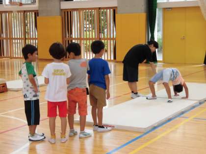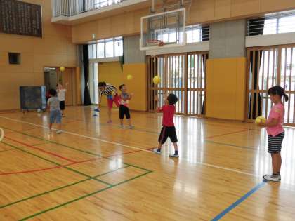 今日は、2年生と5・6年生の活動日でした。タイトルにはボールとありますが、会場では跳び箱やゴム跳び、ケンステップ、マット運動も登場し、子どもたちは「サーキット型」のミッションをどんどんクリアして楽しんでいました。「近年、児童の投げる力が落ちてきている」と言われますが、そのあたりを強化する機会となりました。明日は、1年生がチャレンジします。