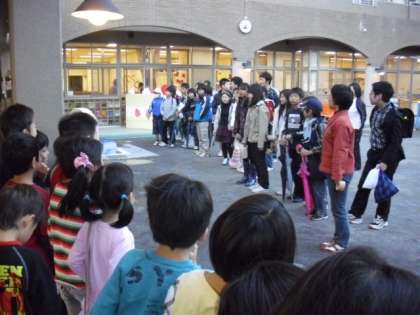 保育園の子どもたちと作品を作った6年生が向かい合い、各作品の代表者が作品への思いや楽しく遊んでほしいという園児たちへ願いを伝えました。小さな子どもたちからたくさんの拍手をもらい、6年生も満足そうでした。自分たちの作品が地域に生かされたことは本当にうれしい限りです。