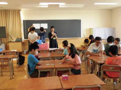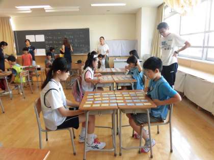 6日(月)の午後2時15分からサマーワークショップの一つ「百人一首大会」が少人数算数教室で行われました。この講座は4年生から6年生までが対象です。学校の授業でも使っている「五色百人一首」で行いました。まず、二人組で練習をしました。その後、3人ずつ4チームに分かれて対戦をしました。上の句が読まれた瞬間に札を取る姿があちらこちらで見られました。