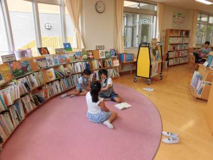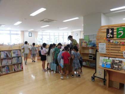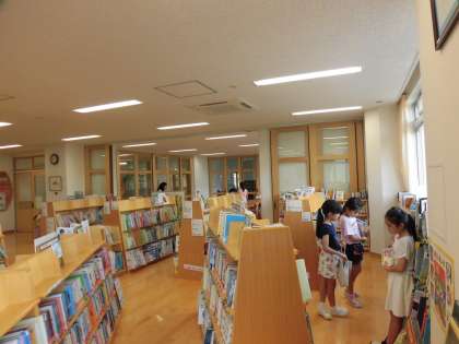 23日(木)の午前中、図書室の開放をしました。図書委員の5・6年生が返却や貸し出しの仕事をしました。水泳の前や後に図書室を利用する子どもたちの姿がありました。