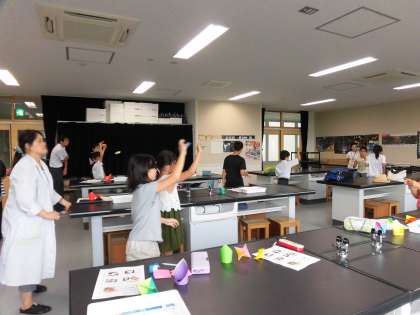 23日(木)の午後から芦花中学校の理科室において「科学クラブ」体験が開催されました。4年生から6年生までの11名が参加しました。今回のテーマは「紙飛行機」。1日目の今回は、「折り紙の基礎」と「つばさ」について学習しました。各テーブルには中学生がアシスタントとして入っていました。小学生は多少緊張しながらも丁寧に折り紙を折ったり、飛ばす練習をしたりしていました。