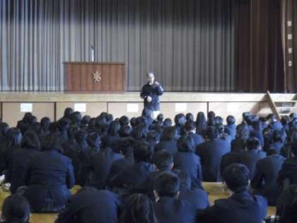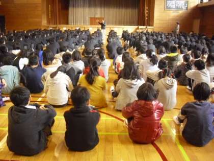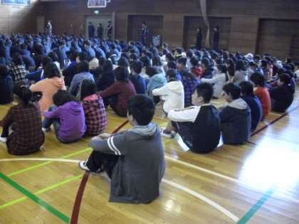12/6 中学校の朝会に参加(6年生)
