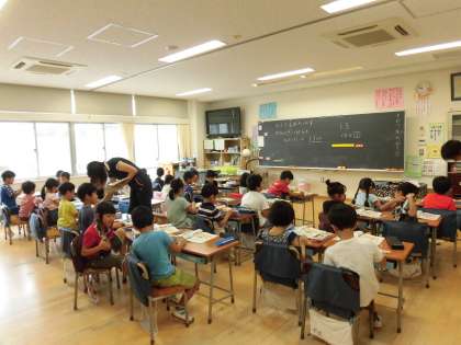 4日(水)の2時間目、1年3組と4組は算数の時間でした。「10よりおおきいかず」の単元です。ブロックを使ったり、半具体物を使ったりして「13」を作っていました。