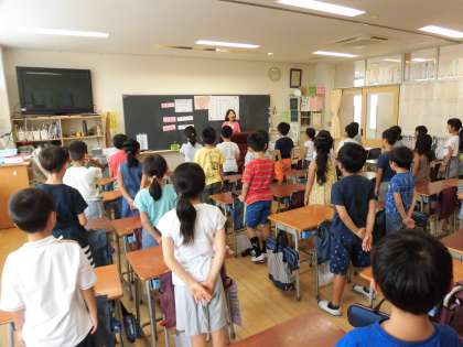 4日(火)の3時間目、2年4組は音楽の学習でした。「星空はいつも」という新しい歌の練習をしていました。歌詞のどの言葉に気をつけたらよいかなど、すすんで意見を出す姿がありました。子どもたちは、口を大きく開けて歌っていました。