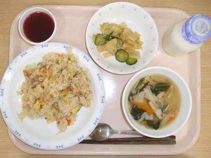 今日の給食は中華風でした。中国料理の中でも歴史が長く、国民食として親しまれているチャーハンは、子どもたちからも人気のあるメニューです。