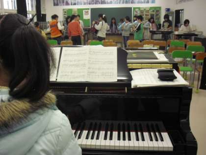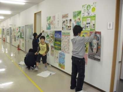 今年最後の定例の委員会活動の様子です。上から整備委員会です。廊下の掲示物の貼り替えをしているところです。次に、図書委員会です。図書室の本の整理をしているところです。そして、器楽委員会です。来週行う小中合同音楽集会の練習をしているところです。