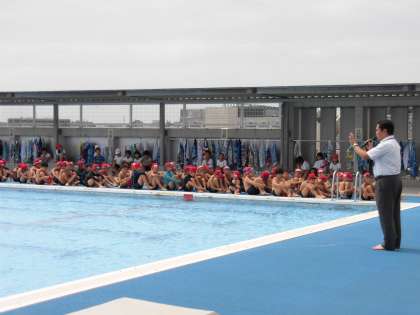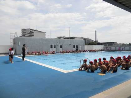 6日(木)の3・4時間目、3年生は最後の水泳指導でした。検定をしてから、プールサイドでプール納めをしました。クラス代表の5人がこの夏の水泳の学習をふり返って感想を述べました。最後に校長先生から「3つの感謝の気持ちをもってほしいこと」のお話がありました。