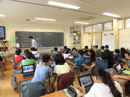 6日(木)の5時間目、5年2組は理科の時間でした。単元「天気の変化」の中から雲の動き方について学習しました。各自が予想を立てたあと、タブレットで確認しました。気象衛星からの雲画像に興味をもち、画面を動かしながら見る姿がありました。