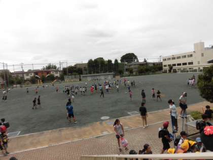 11日(火)、雨上がりの校庭で子どもたちが朝遊びをしていました。バスケットボール、フラフープ、竹馬など友達と元気に遊んでいました。6年生は「長なわとび」の自主練習をしています。そのとぶ姿を他の学年の子どもたちが「すごいね。」「はやい。」と言いながらながめていました。