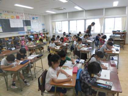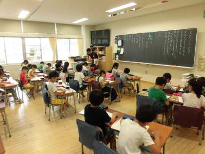 12日(水)の3時間目、1年5組は国語の時間でした。漢字の「火」の練習をしていました。書き順を覚えたり、火を使った短文作りをしたりしていました。