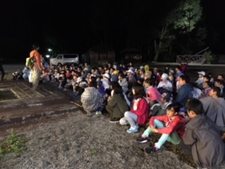 おばんになります。すっかり真っ暗闇です。これから宿舎のスタッフの方の案内でナイトハイクです。外は少し寒いです。