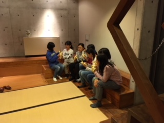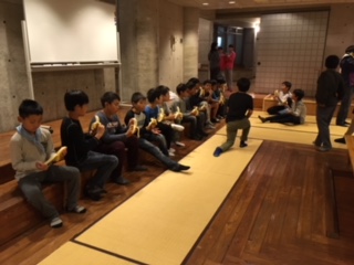 ナイトハイクを終え、宿舎に戻りました。夕食のカレーが早かったので、夜食のバナナをいただいています。