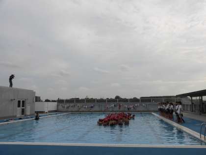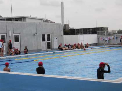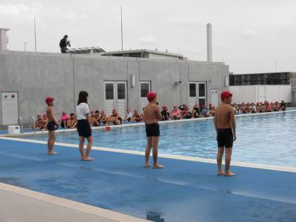13日(木)の5・6時間目、6年生は小学生として最後の水泳を行いました。検定を行い、自分の泳力を確認しました。プール納めでは、クラス代表の4人が自分のプールにかけてきた思いを話しました。「水泳記録会でいい記録が出た。」「中学校でもがんばって練習したい。」など態度も立派でした。最後に、卒業アルバムに載せる集合写真を撮りました。機械室の屋上にいるカメラマンを見る子どもたちの笑顔がすてきでした。