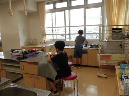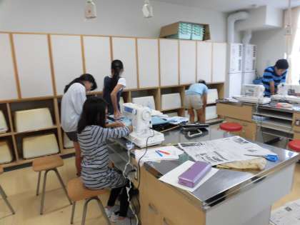 14日(金)の3・4時間目、6年3組は家庭科の時間でした。生活に役立つ物作りとして、かべかけやトートバッグ作りに取り組んでいます。布の裁断が済んだ人からミシンを使っての作業に入りました。作品は一人ひとり違うので、家庭科の先生と確認しながら進めています。