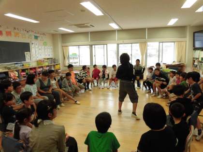 20日(木)の中休みは兄弟学年で遊ぶ「フレンドワールド」の時間でした。遊ぶ場所は教室、校庭、体育館が割り当てられています。1年生と6年生は教室で遊び、「いす取りゲーム」や「フルーツバスケット」をしていました。校庭では、「ドッジボール」や「鬼ごっこ」をして遊んでいました。