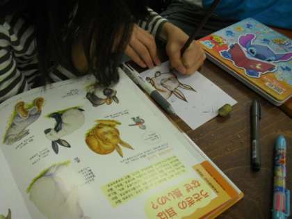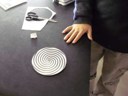 卓球クラブは、抽選で決めたペアでダブルスのゲームをして楽しみました。科学クラブは、錯覚の実験をしていました。グルグル回る渦巻きを見た後に、違う方向を見ると残像によって不思議な感じがします。マンガクラブは、それぞれに思い思いの年賀状を作成しました。