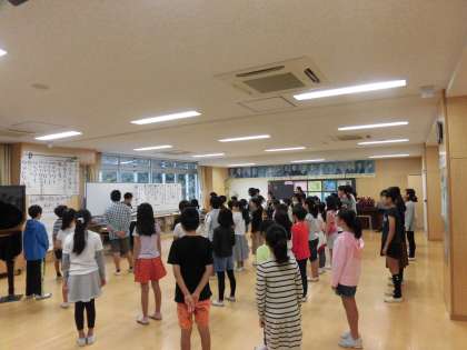 26日(水)本校に合唱団が正式に誕生し、活動の初日を迎えました。学年関係なく並んであいさつに始まり、あいさつに終わりました。「山の朝」「やあ!」の歌の練習をしました。特に、「やあ!」では、4拍子を意識できるように体を左右に動かしたり、指揮をしたりしました。また、「が」の音が鼻濁音になるように何回も練習をしました。合唱団が学校に根付き、息の長い活動になるようにと思います。