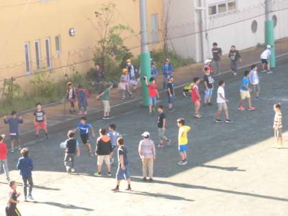 28日(金)、久しぶりに青空が広がりました。空気は少しひんやりしますが、校庭には朝遊びを楽しむ子どもたちの姿がありました。バスケットボールやドッジボール、長なわなど、思い思いの遊びを楽しんでいました。