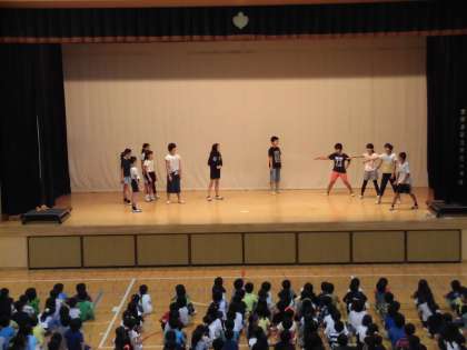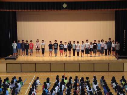 28日(金)の朝は、体育館で図書委員会の発表をしました。前半は、「図書室では、静かに過ごしてください。」というメッセージを劇仕立てにして表わしていました。後半は、本に関する三択クイズをして盛り上がりました。本校では10月1日(月)から読書月間に入ります。たくさんの本と出あってほしいです。
