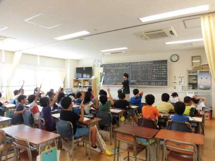 10月1日(月)の3時間目、4年3組と4組は算数の時間でした。3クラスにわかれて習熟度別に学習しています。今回は、「わり算のきまり」について考えました。式と式の間のきまりを見つけることができ、「そうか」「わかった」という声が子どもたちの中からあがりました。