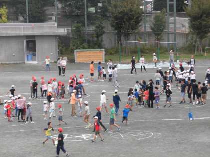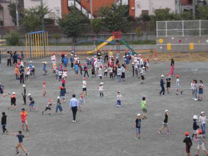 11日(木)の中休み、兄弟学年で遊ぶ「フレンドワールド」をしました。校庭では、おにごっこやドッジボールなどをして楽しむ姿がありました。
