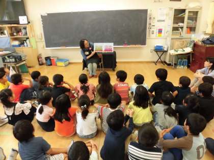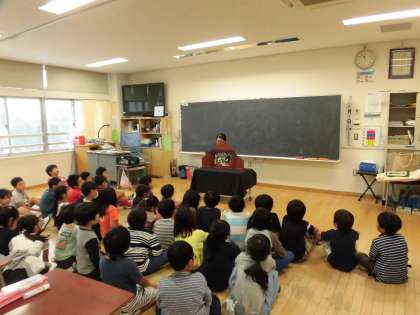 11日(木)の4時間目、2年5組は国語の時間でした。今回は、粕谷図書館の方による「お話会」でした。素話、絵本の読み聞かせ、紙芝居、手遊びなどをしていただき、子どもたちはたくさんのお話と出あうことができました。特に、魔女が登場する紙芝居では、教室中が静かになり、話の展開を見守る姿がありました。