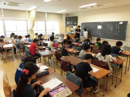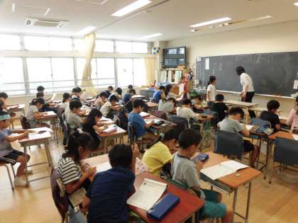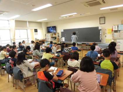 毎週木曜日午後1時からの15分間は、算数タイムです。11日(木)も給食の片付けをしてから、各教室で計算問題を解く子どもたちの姿がありました。写真は、3年生の様子です。