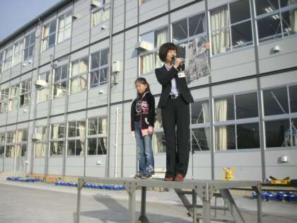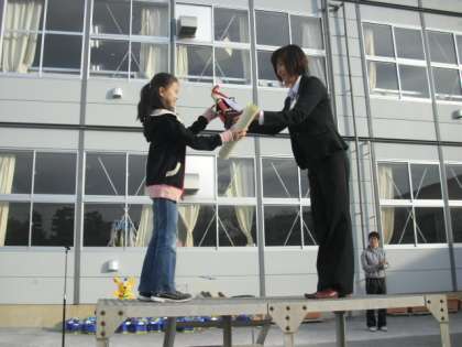 次に、パソコン入力コンクールでジャストシステム賞、総務大臣賞を受賞した児童を紹介しました。2枚の賞状の他、トロフィーも贈呈され、子どもたちからも声が上がっていました。