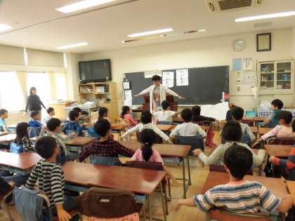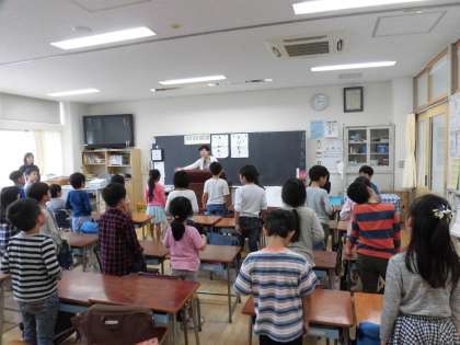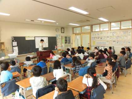15日(月)の3時間目、1年2組は音楽の時間でした。担任ではなく音楽の先生の授業でした。鼻濁音の練習をしてから、校歌や「星空はいつも」「ちいさい秋みつけた」の歌を歌いました。「ちいさい秋みつけた」ではCDを静かに聞き、声楽家のまねをしようと張り切る姿がありました。