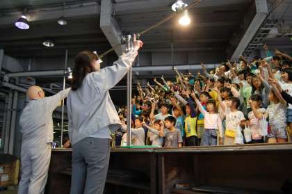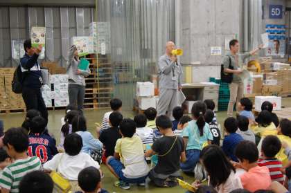 最後の見学地は、世田谷市場です。世は豊洲市場の話題で盛り上がっていますが、世田谷も負けてはいません。広い場内では、昭和47年から野菜や果物、生花等を、手広く扱っています。子どもたちは、生花、野菜のせり場をを順番に見学し、実際にハンドサインで値段交渉をする体験をしました。クイズに全問正解した人へのお土産(?)のビオラは、是非大事に育てていただきますよう、お願いしますね。