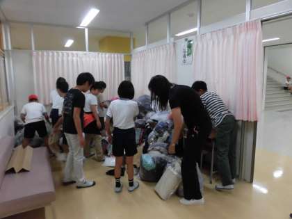 今年初めて取り組んだ「ふくの輪プロジェクト」は13日(土)で終了しました。19日(金)、休み時間を利用して、オリンピック・パラリンピック委員会の子どもたちが、集まった服の重さを計りました。300kgをこえる服が集まりました。保護者の皆様、ご協力をありがとうございました。