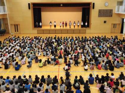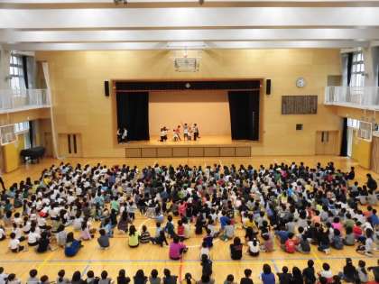 23日(火)は朝学習ではなく集会を行いました。集会委員会が考えたゲームは「まちがいさがし」です。6年生が連合運動会に出発したため、5年生の委員だけで進めました。子どもたちはステージ上をしっかり見つめ、幕が開くとすぐにまちがいに気付いていました。
