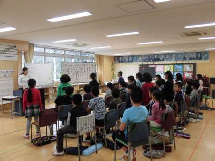 23日(火)の5時間目、4年3組は音楽の時間でした。題材名「ゆかいな船長」の曲をリコーダーで練習していました。スタッカートで吹くところとレガートで吹くところを意識しながら練習をしました。その後、「ゆかいに歩けば」の歌を歌いました。子どもたちは、この曲中にもスタッカートが使われていることに気付きました。