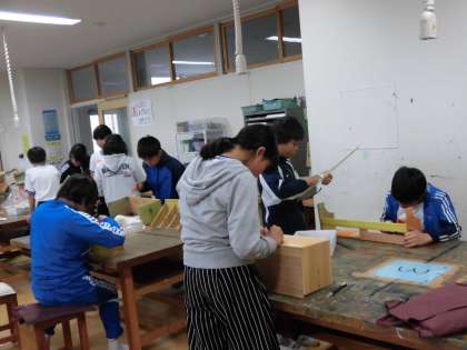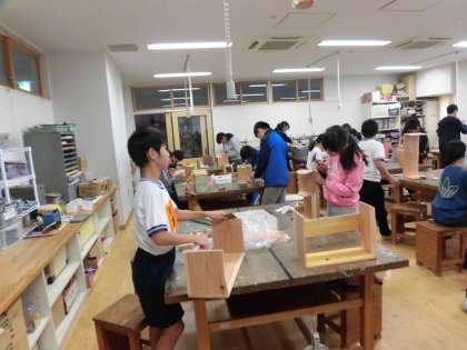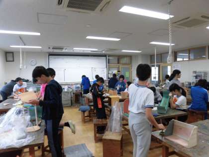 23日(火)の6時間目、6年1組は図画工作の時間でした。連合運動会から帰ってきてすぐに作品作りに取りかかりました。進み具合は人によって違いますが、限られた時間の中でがんばっていました。