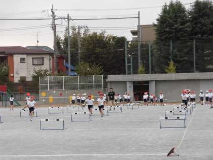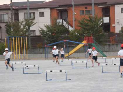 26日(金)の1時間目、4年4組は体育の時間でした。ハードル走に取り組んでいました。子どもたちは、毎回同じ足でふみ切ることを意識しながら走っていました。