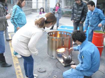 イベント委員会のバーナー講習会の様子です。来年1月16日に予定している「新年親子お楽しみ会」でバーナーを使用するため、烏山総合支所の方々を講師に講習会を行っているところです。組み立てるところから始めました。灯油を入れ、バーナーと接続し点火するところまで行いました。