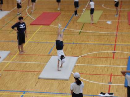 30日(火)の4時間目、6年2組は体育の時間でした。マット運動に取り組んでいました。芦花中学校の2年生に教えていただいたことを思い出しながら、技の練習をしていました。同じグループの友達を支えたり、手本を見せてもらったりしながらがんばっていました。