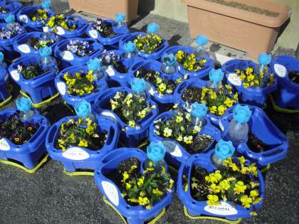さて、今日は風は吹いてはいますが、日差しは暖かく、ニワトリも校庭を元気に散歩しています。1年生が育てているパンジーもきれいに咲いています。よく見てみると、パンジーの隣にチューリップの球根の芽が生えているものもありました。季節は冬ですが、春への準備も少しずつ始まっているようです。