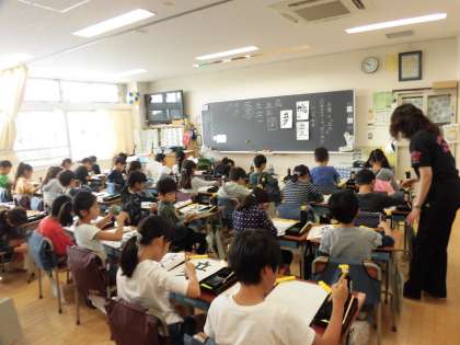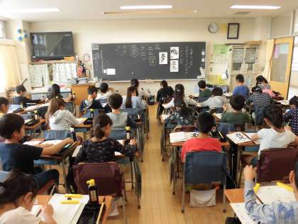 31日(水)の1・2時間目、3年1組は習字の時間でした。行の中心に気を付けながら「立冬」の二文字を練習しました。なぞり練習のあと、清書に入りました。学級全体が静かな中で取り組むことができました。