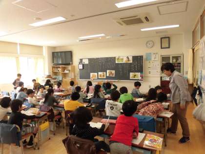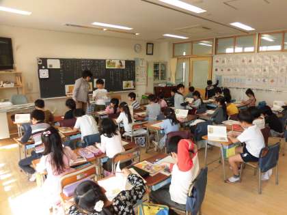 11月1日(木)の3時間目、1年2組は国語の時間でした。物語「あいしているから」を読んで、主人公の気持ちを考えていました。