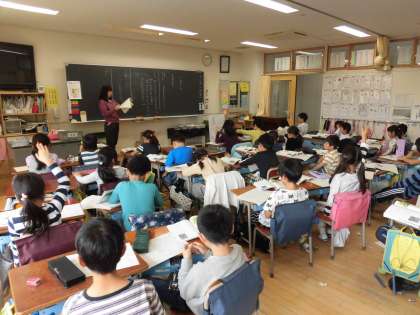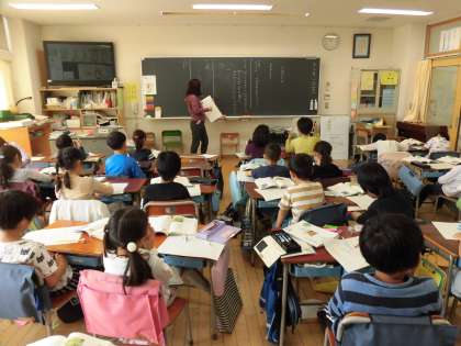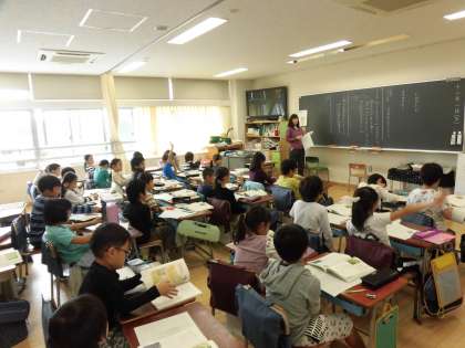 11月1日(木)の3時間目、2年1組は国語の時間でした。説明文「たねのたび」を読んでいました。今回は「オオオナモミ」のたねの旅をたどっていました。