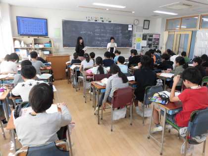11月1日(木)の4時間目、6年3組は外国語の時間でした。担任、英語活動支援員の先生とともに教科名や複数形の言い方を練習していました。複数形のときのSの発音に気を付けながら声を出していました。